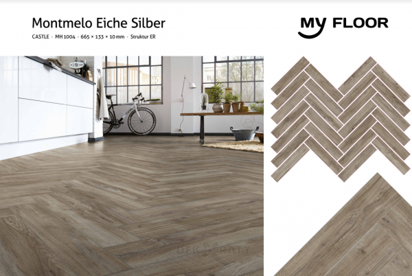 Modernus ir elegantiškas laminuotų grindų dizainas: šios dvi savybės išskiria visus naujosios My Floor Castle kolekcijos dekorus. Ypatingas eglutės dizainas leidža sukurti prabangų Art Deco jausmą, o šilti, natūralūs ir autentiški dizainai leidžia jaustis gerai.